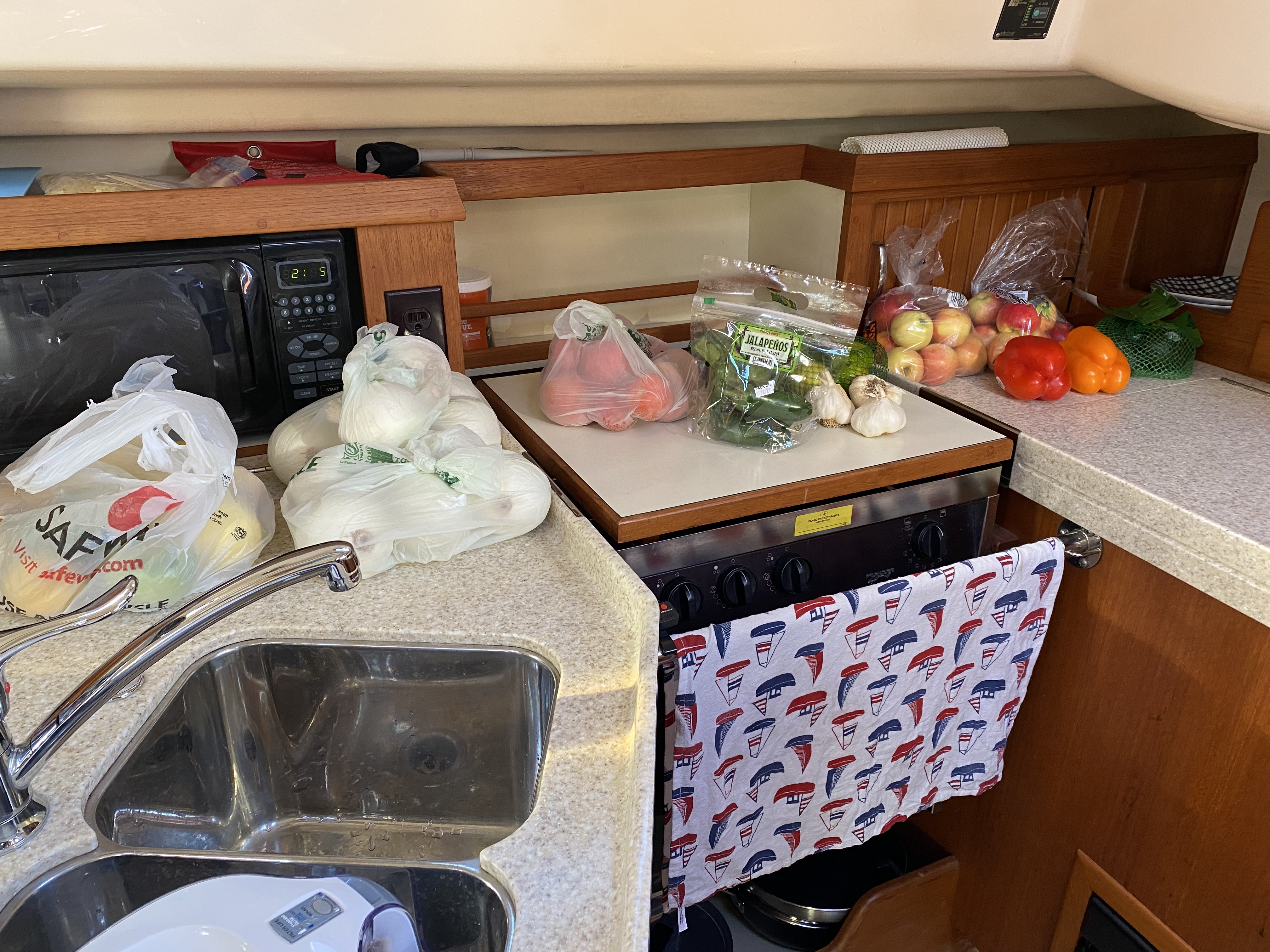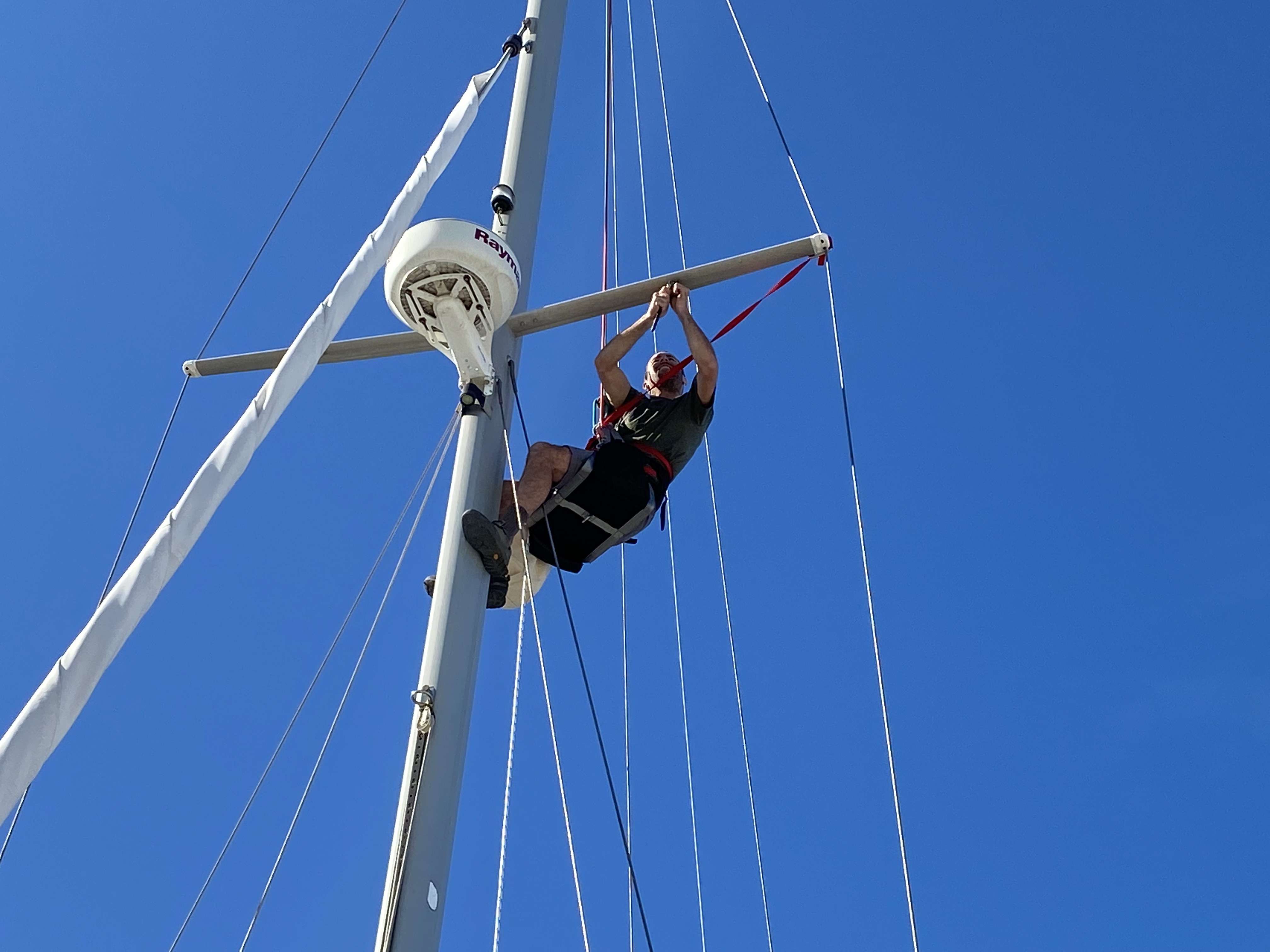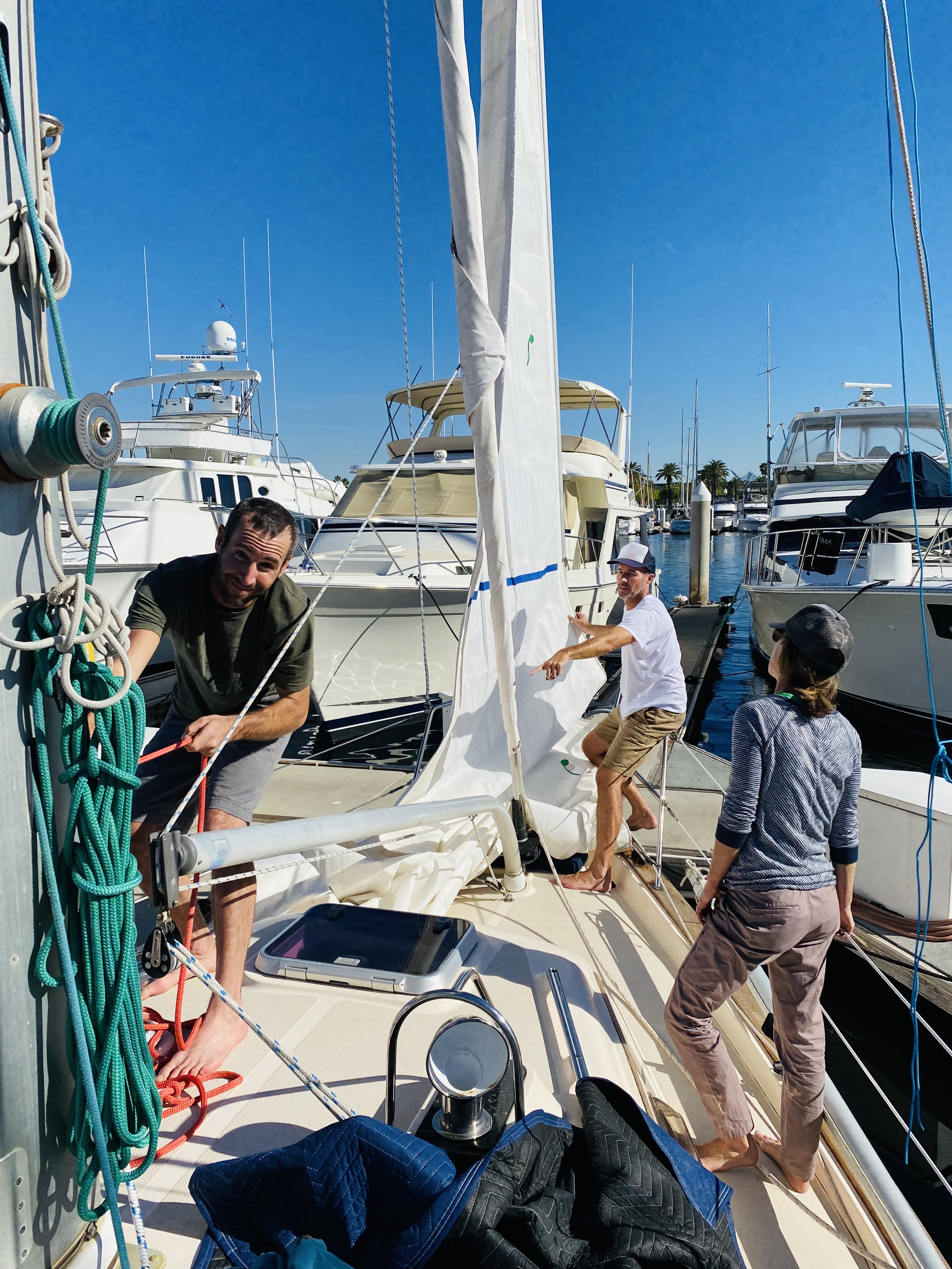 We are beyond excited to be headed out for the start of our Mexico trip tomorrow morning! Jim’s brother John and his girlfriend Natalie are joining us for the first few weeks. After many months of preparation, today was mostly spent gathering final provisions, installing the flag halyards, a new spinnaker block and halyard, as well as a general rig inspection. Solitude is looking good and the crew is ready to go!