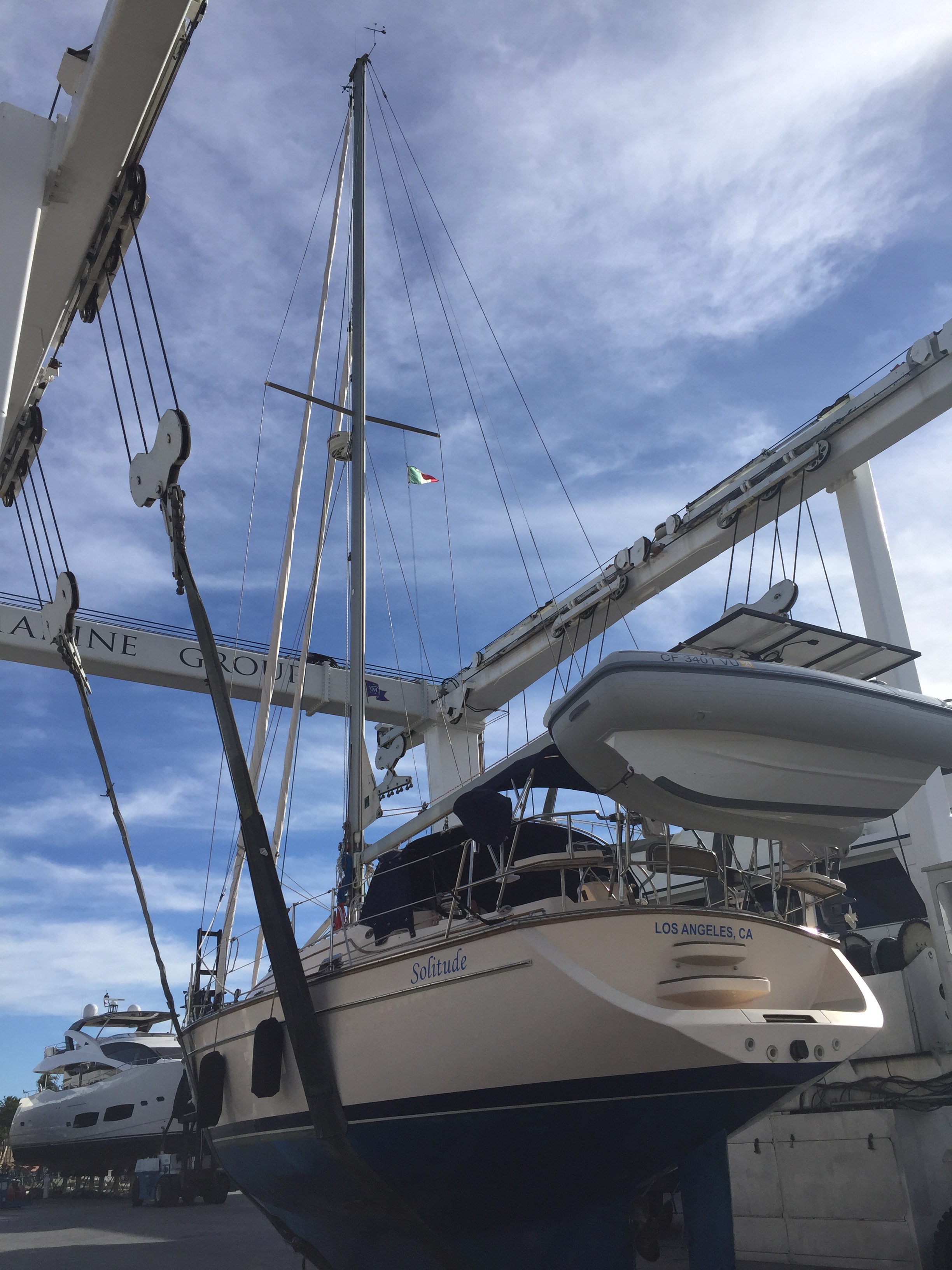 Our biggest challenge now was finding a spot to keep Solitude for the holidays. We were told all the marinas from Cabo San Lucas to La Paz were full. The haul out facility was also full but they were able to work us in and we scheduled some TLC for Solitude. While we are celebrating the holidays, Solitude will receive new bottom paint, a new shaft seal, new rudder packing and a full buff and wax.