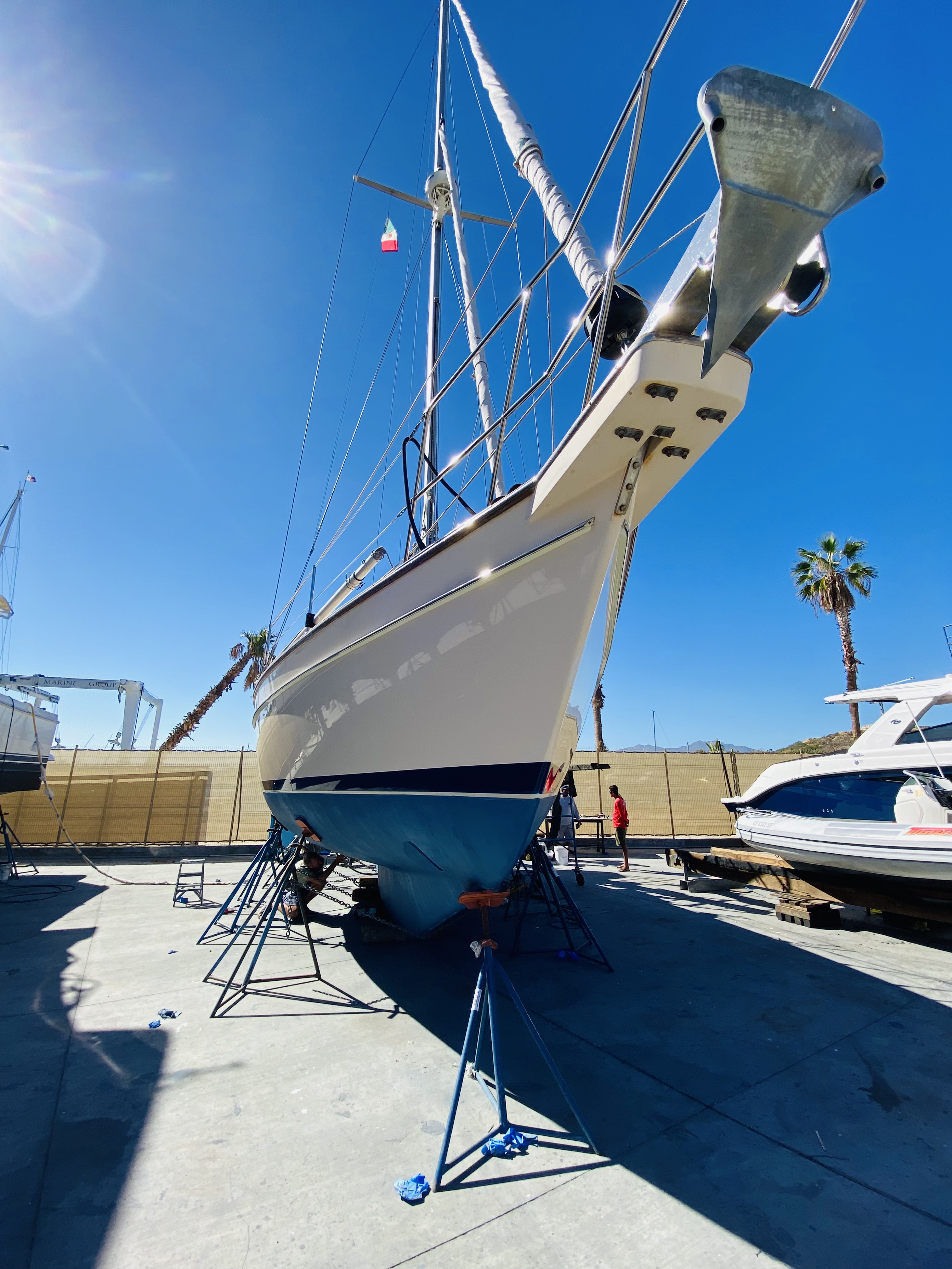 We put Solitude back in the water on January 4. The shadow from the old name and home port (Marie, San Diego) has been almost entirely removed from the wet sanding work – cheers to all the wonderful memories and adventures on Marie!