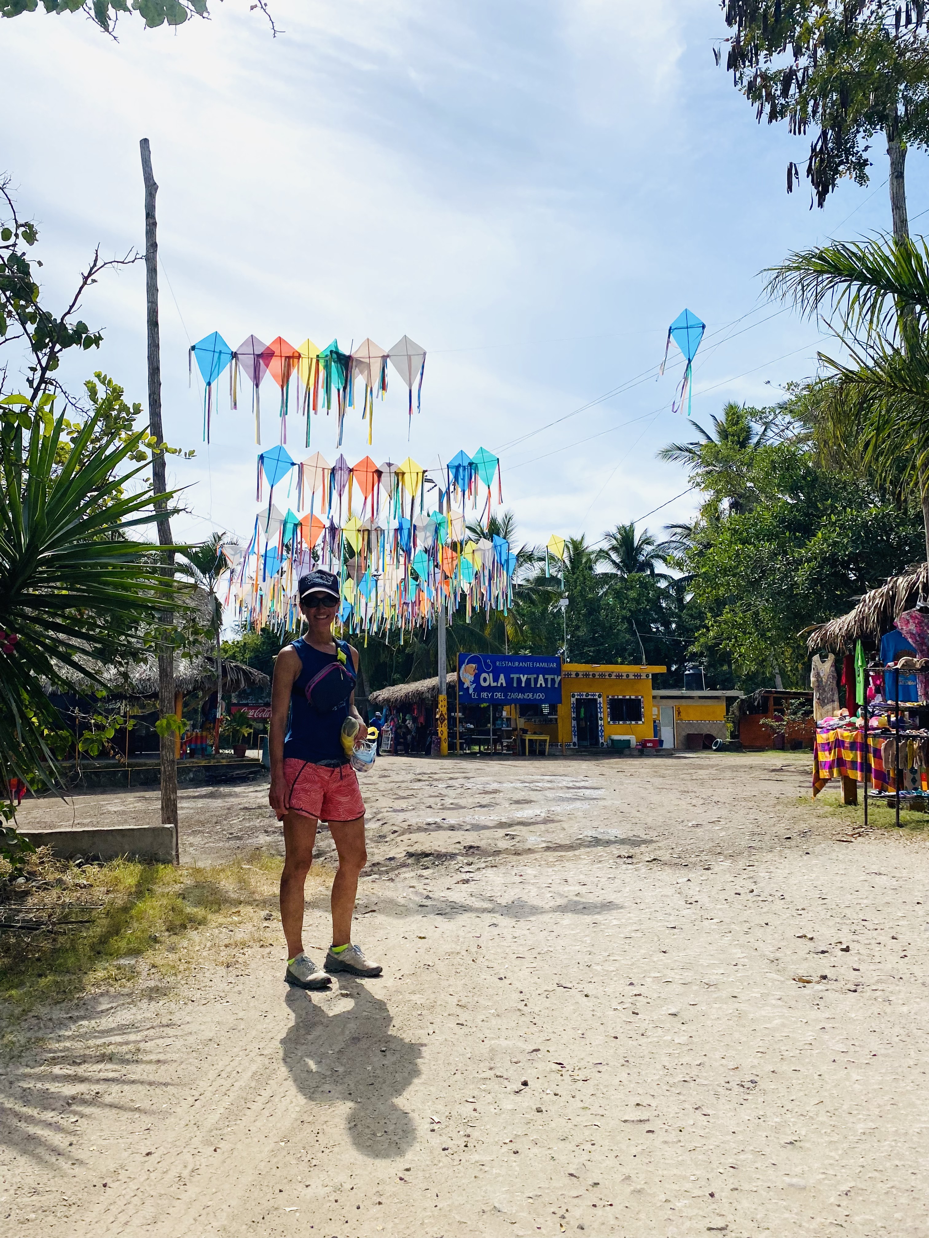 A short, 22 mile hop down the coast, we stopped in the small anchorage of Chacala. We caught a jack crevalle on our way into the bay. It was a tiring fight! We let him go and headed in to set our anchor. There were ten other sailboats in this small, rolly anchorage making it challenging to find a protected spot. We launched our two man kayak and went to shore for a walk around the small town, beach and campground area. We met another couple on an Island Packet 380 from Seattle around our age. They are headed to St. Croix in the Caribbean through the Panama Canal and plan to cruise for the next few years. We spent one night in this tropical Pacific anchorage and headed out for Banderas Bay in the morning.