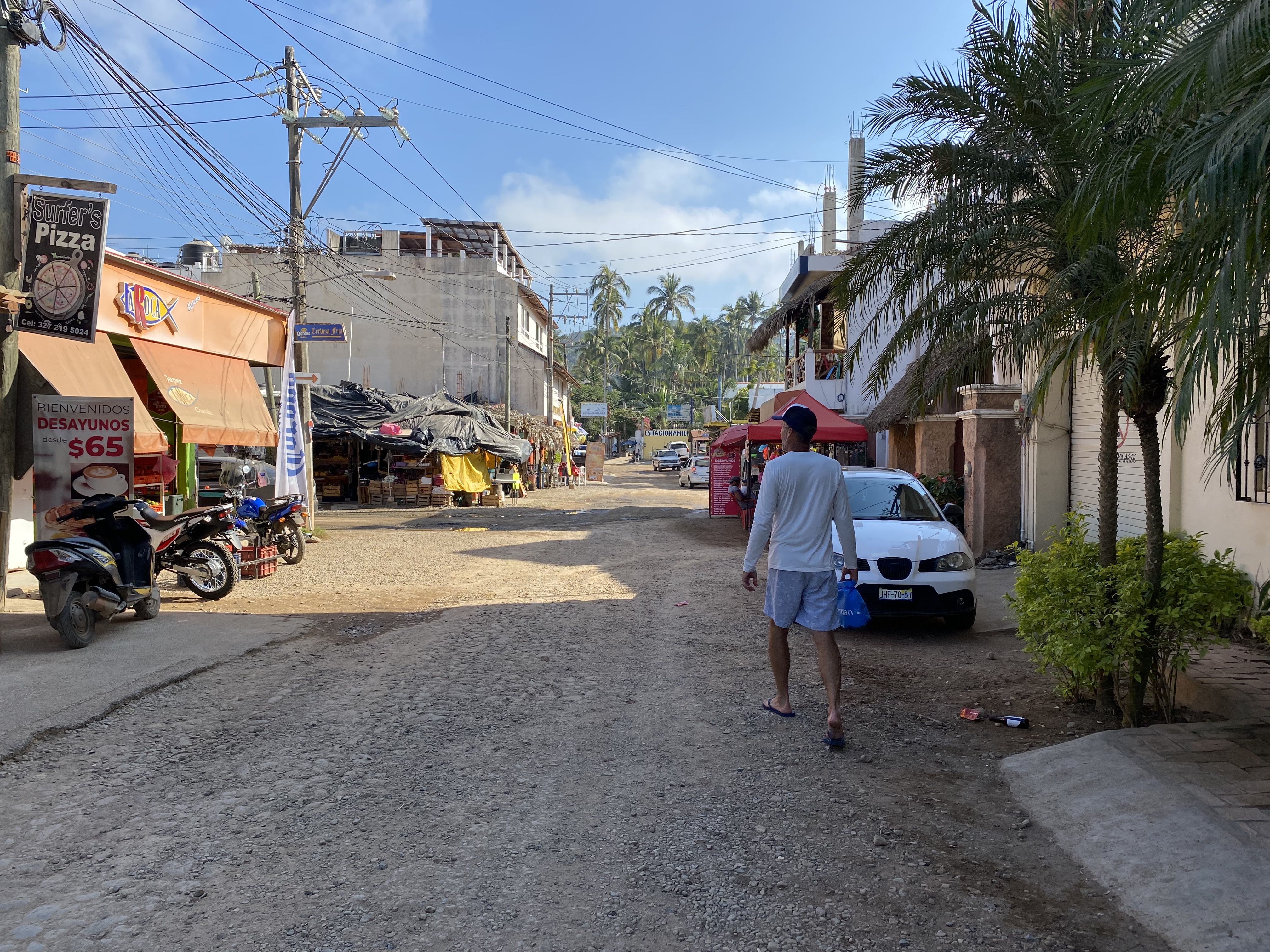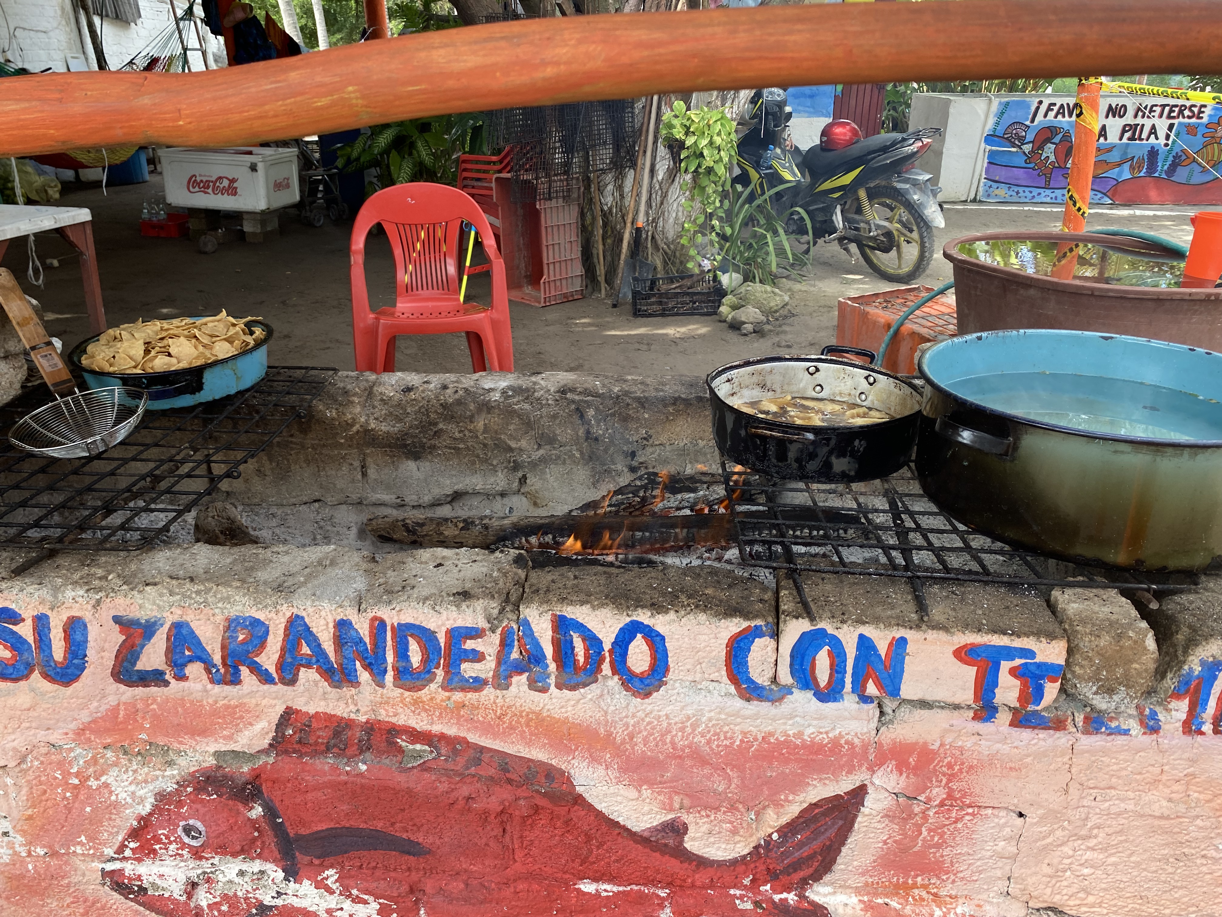 We set anchor and got some sleep. With a little rest we went to shore and walked the beach. As we walked we noticed the tide went out within a matter of minutes and in the same amount time came back in, all the way up to our dinghy and floated it off the sand. It was bizarre to watch and the only thing we could figure was this could be the remnants of the tsumani from the volcano eruption near Tonga earlier that day. The weather is much more humid here compared to the dry desert of Baja. Matanchen is a large, shallow, calm bay in the winter months and during summer hurricane season turns into an exceptionally long surf break. The mosquitos and jejenes (no see ums) are hard to avoid here. The locals burn coconut husks to a smolder to keep them away and small plumes of smoke can be seen all over the shoreline and in the lush, jungle hills. Matanchen is also the spot to buy banana bread. The street side stands have impressive commercial ovens lining the back of their open-air operations. We walked the dirt road following the beach on the backside of the palapa restaurants and stopped in for lunch before heading back to the boat. We swam and fell asleep early.