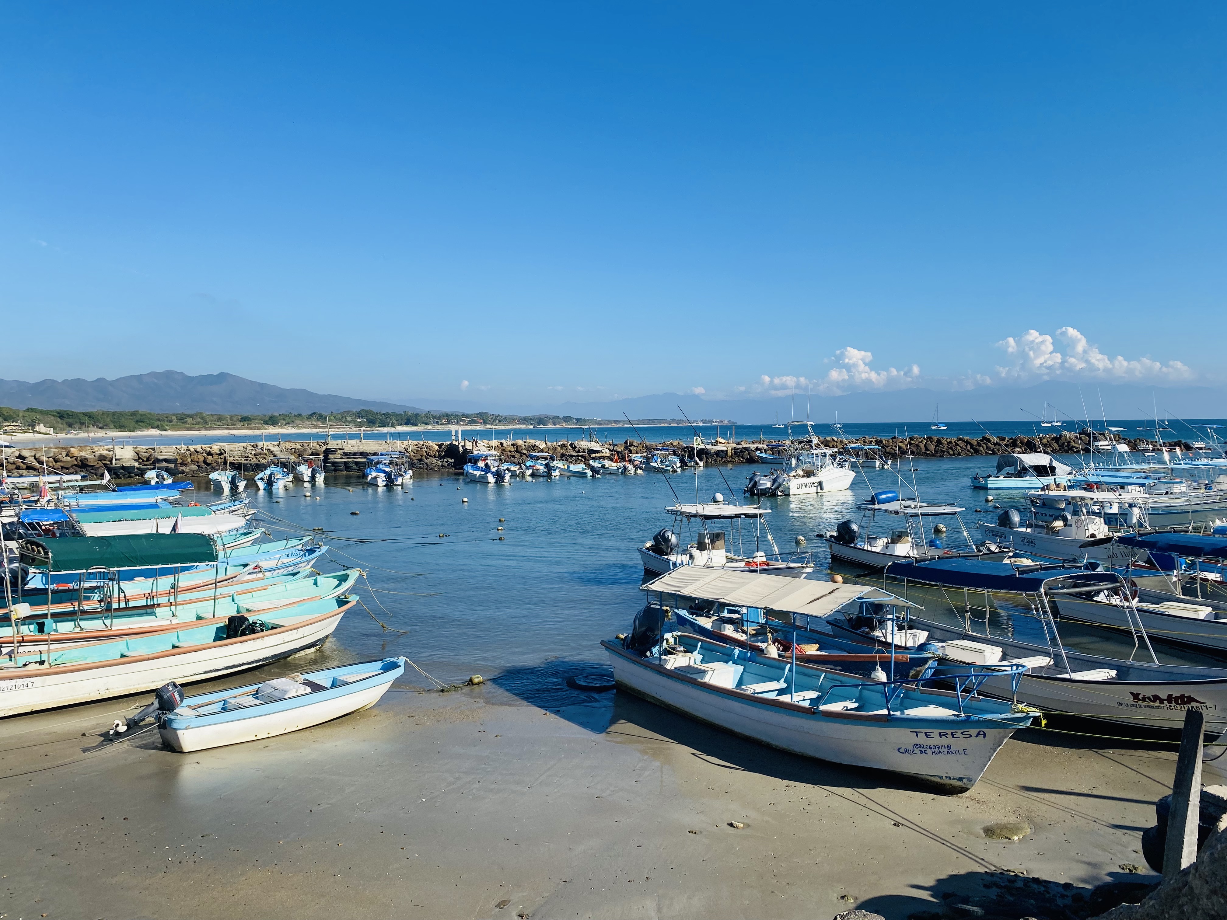 We are excited to be in Banderas Bay, the “hub” of Pacific Mexico sailing. We anchored off Punta de Mita behind a line up of surf breaks in an area referred to as El Anclote. We were hoping to walk the peninsula but Punta Mita is gated and private, a reservation at one of the hotels is required and you must enter by car. We enjoyed walking the small town of Corral del Risco instead. We caught another bonito on a dinghy ride outside the anchorage, these guys seem to bite every time.