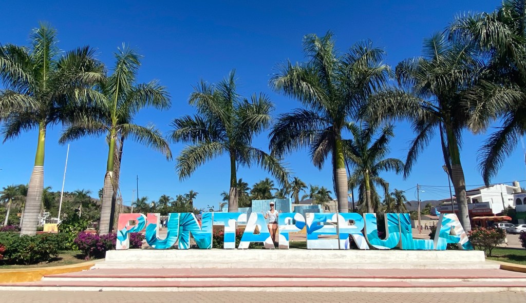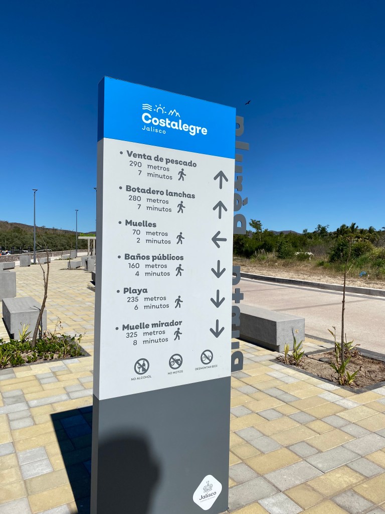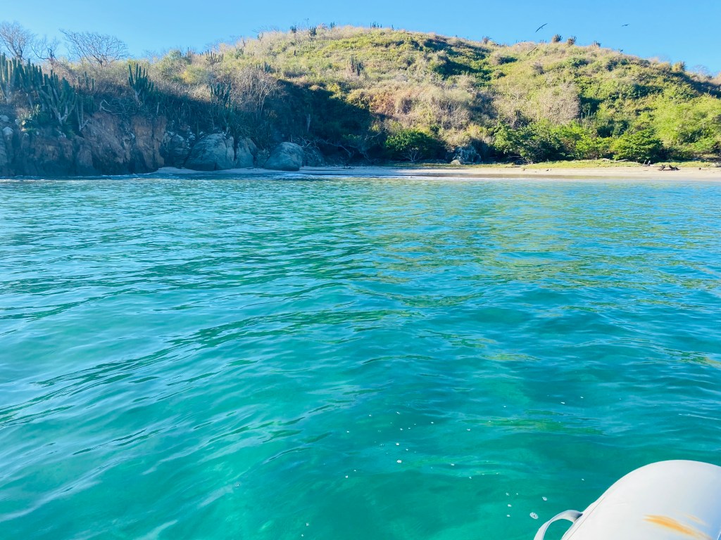 It was a relief to reach Chamela Bay, a calm, sandy bottom anchorage with warm water. We are now in the 150 mile stretch of coast named Costalegre, which means “cheerful coast”, and is also commonly referred to as the gold coast. We swam, paddled and walked the town of Perula on the north end of the bay and the entire beach as far down as we could toward the south end of the bay before reaching a rocky headland. We refortified and rested back to 100%. On the street it was common to see entire families on motorcycles and bicycles, up to 3 and 4 people on one bike commuting and going about their day. There is a new, extensive cement dock and gangway in town, shiny new signage and bathrooms with showers – all signs that this little town has plans to grow. There are rumors Perula may become a new stopover for cruise ships.