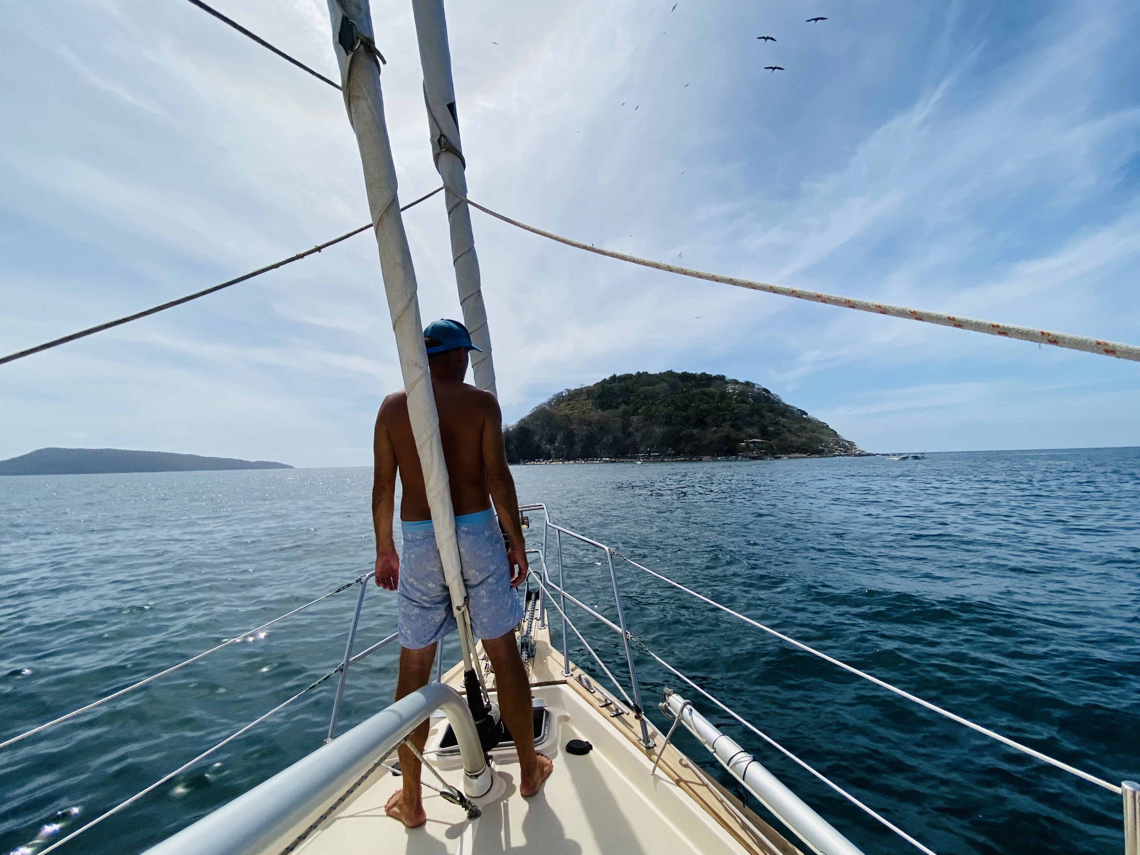 A short day sail from Punta Mita, we set anchor in Jaltemba to break up our trip to Matanchen. There was one other sailboat in the anchorage off Isla La Pena and the island beach was crowded with locals during Semana Santa (Holy Week). We sat on the cabin top and watched water taxis taking people back to shore until the island was empty and quiet by 6pm. We fell asleep with birds circling overhead before heading out early the next morning for Matanchen.