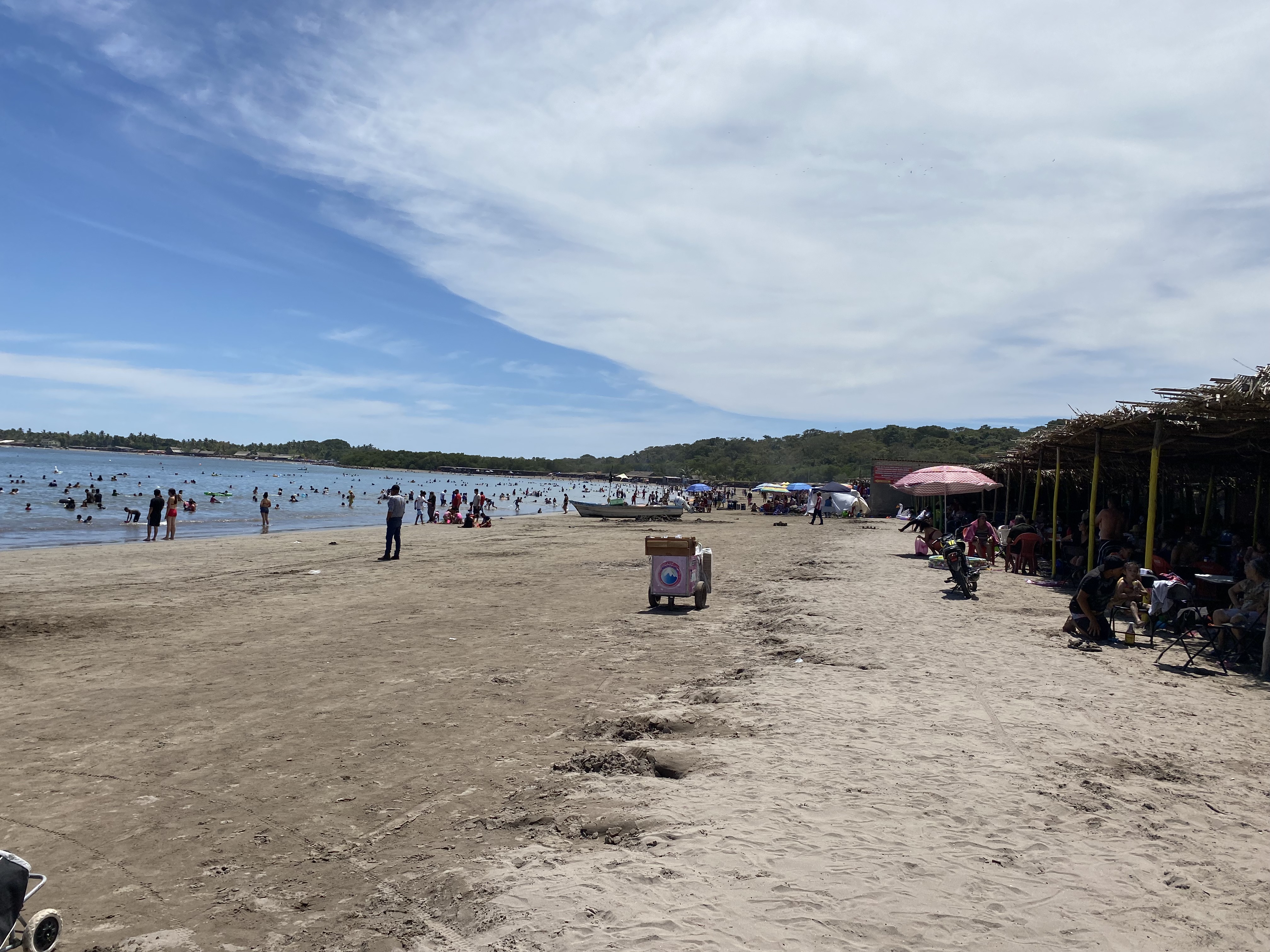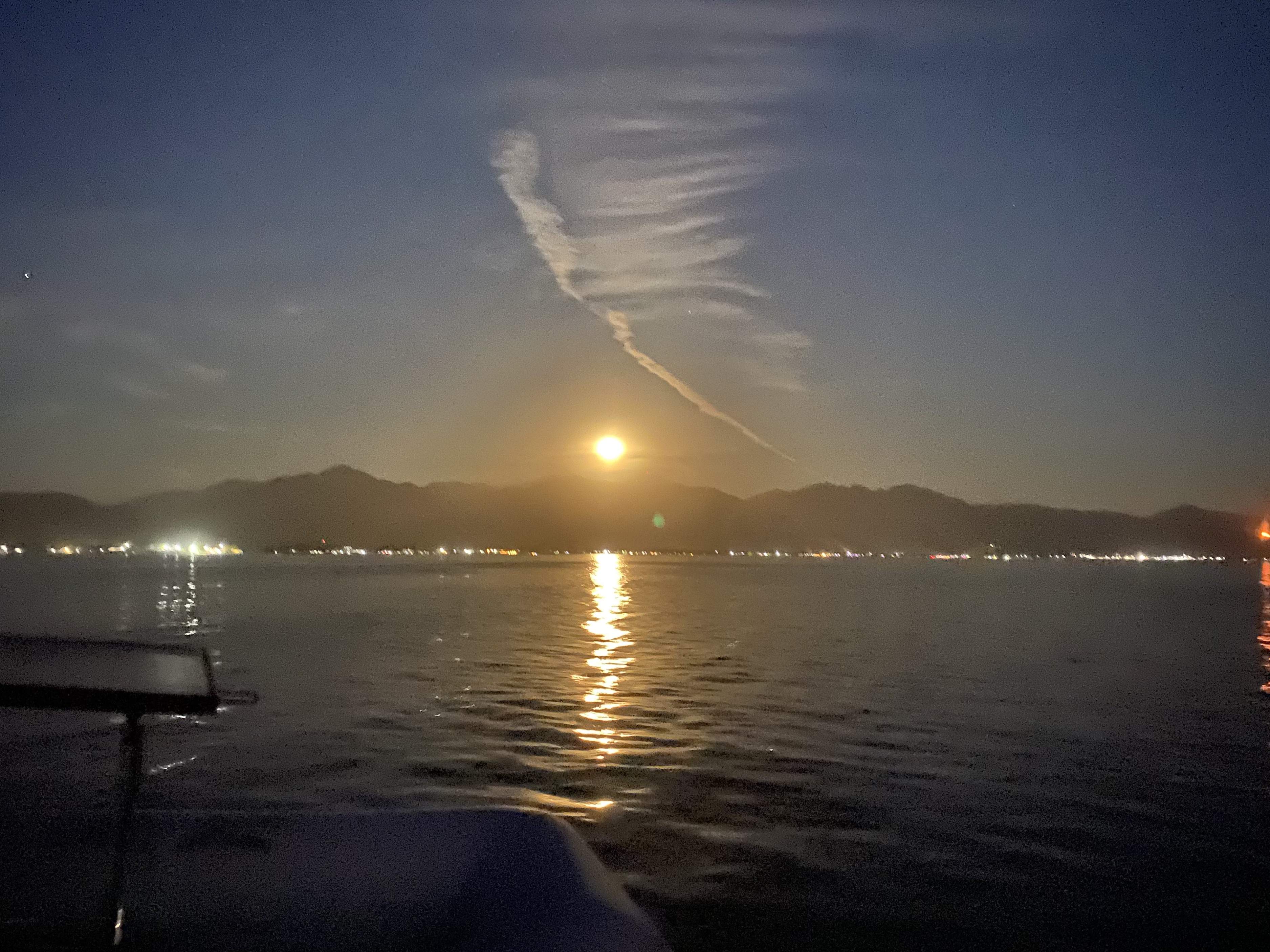 We arrived in Matanchen mid afternoon to the same anchorage where we first stopped after our two night passage from Baja three months earlier. We paddled into the beach and taxi’d over to San Blas to walk town, an area we didn’t see when we were headed south. Similar to what we found in Perula, it appears that San Blas is also trying to attract cruise ship traffic. Inside the estuary they have built two large concrete piers and a large shade structure with small retail shops, a large garden area and pathways leading to town. Back at the boat, we enjoyed music from the numerous Mariachi bands playing along the beach while we swam and chatted with a cruiser we met further south in January who was also headed to the Sea. At night Matanchen Bay was lit from the full moon shining above the Sierra Madre Occidental Mountains and we watched a small fire in the jungle hills from the anchorage.