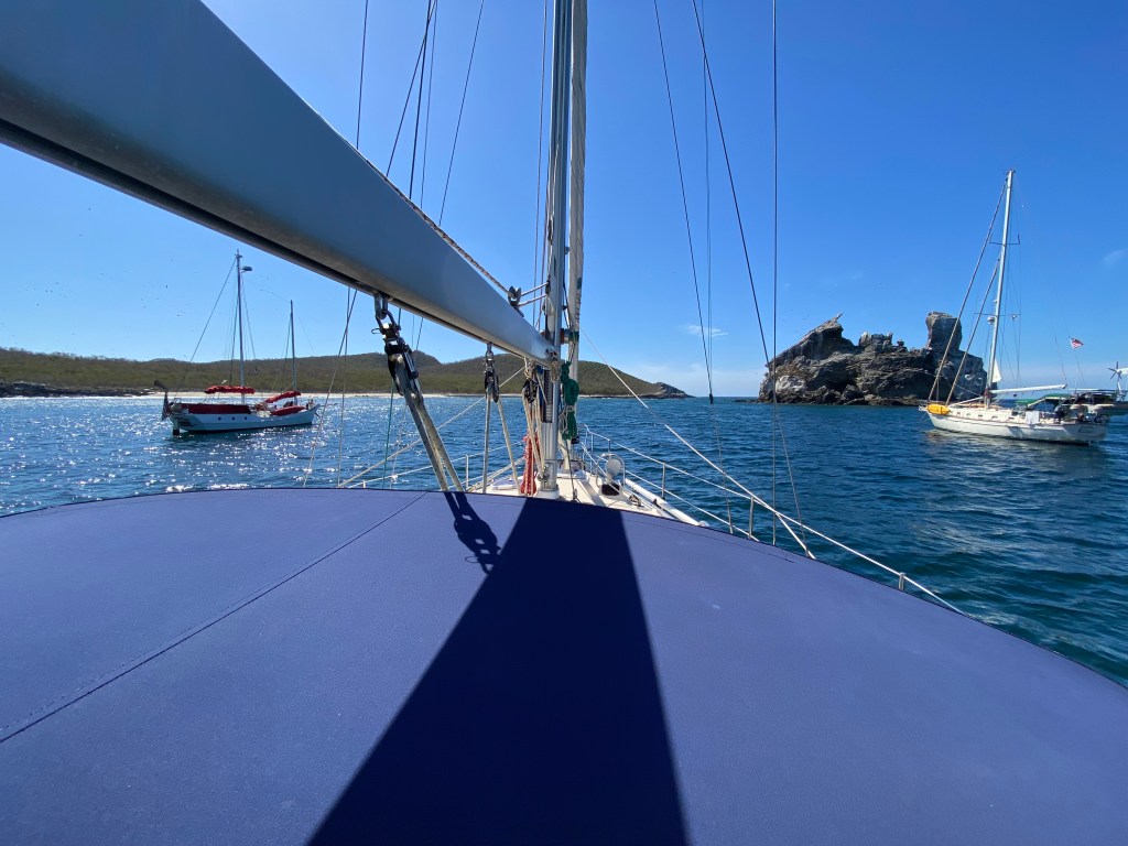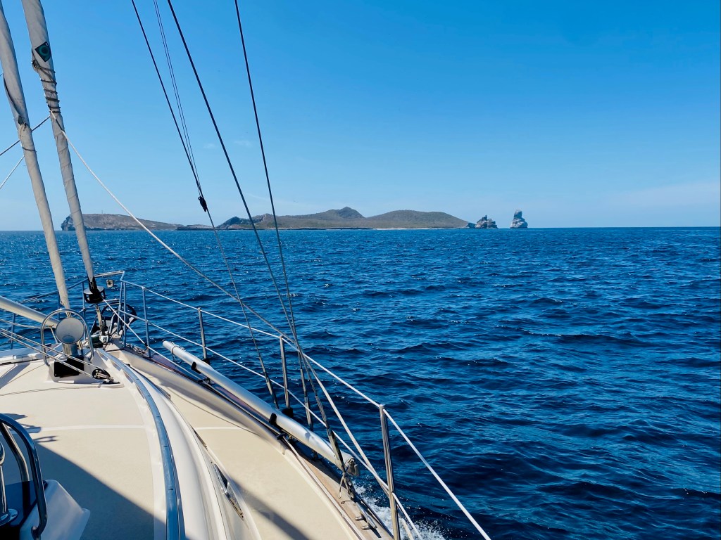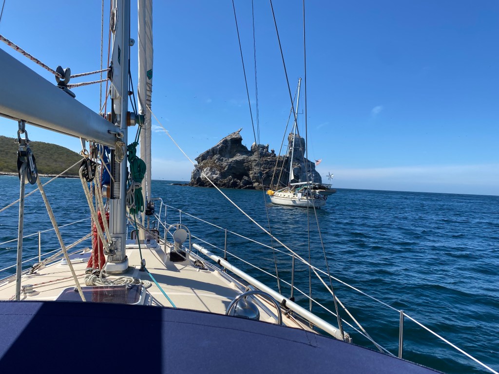 After six hours we pulled in at Isla Isabel, there were only two boats and that gave us a better chance of finding a spot to set the hook in this difficult anchorage. In 18-20 knots of wind, we attempted to anchor five times, circling around a small, sandy shelf before it drops 40’ to a rocky bottom . We dropped the anchor twice, once on rock and once on an area that appeared to be sand but the anchor would not set; indicating there was rock underneath a thin layer of sand. The location of the two boats made things more challenging as they did not choose positions that welcomed other vessels, making any newcomer forced to squeeze in between them or slightly forward leaving a sketchy swing too close to either of their bows and the rock monolith to the north. If we were able to set anchor, we wouldn’t have felt comfortable leaving the boat to explore the island with any of the available options so we chose to move on to Mazatlan.