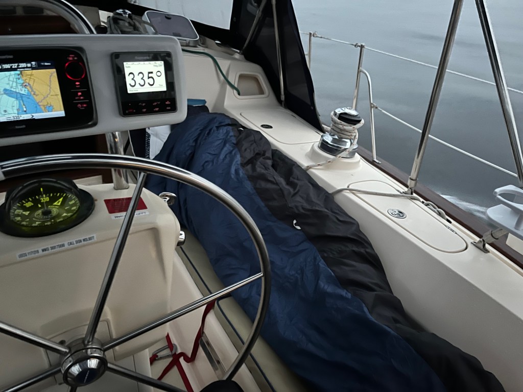 The winds up to Mazatlan were a bit heavier than forecast, we had 18-20 knots and well past sunset. We actually put on our foul weather gear to help keep dry from the ocean spray and dewy night. When we arrived just offshore of Mazatlan the fog was thick. On our radar there were boats within 1/4 mile of us that that we could not see through the fog. We anchored off Isla Venado for three hours waiting for the fog to lift before making our way into the narrow, shallow channel leading to the marina that is often crowded with dredging equipment. When we finally got in around noon we pulled into our old slip from last summer and were welcomed by sailors we knew. We checked in and had hot showers immediately, a great onshore meal at El Pargo y La Vaca and crashed out on a very still, stable bed. Night night!