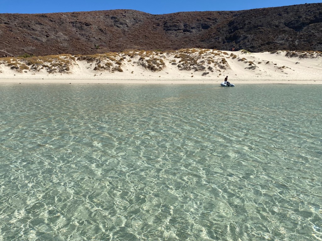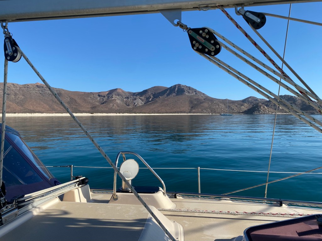 The Playa Bonanza anchorage is the most peaceful stop we’ve had in the last two seasons. There was no music coming from the beach, no people in sight, no boat traffic and no wind or sound of birds that evening. Absolute silence and stillness – just the stark, scenic beauty of the desert mountains and the sea. It was wonderful.