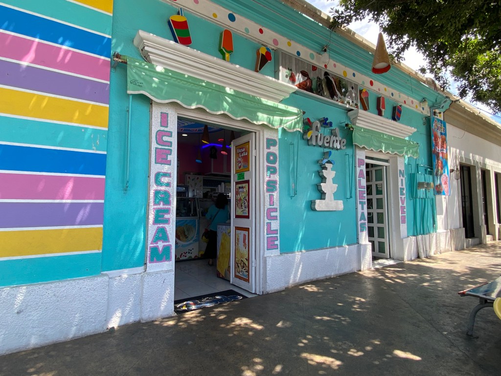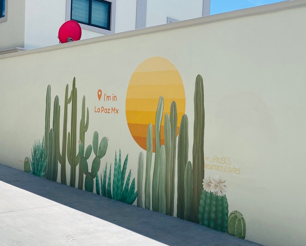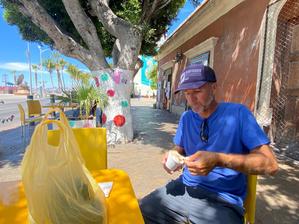 We went into La Paz the following morning and dropped anchor just across from Marina La Paz. Marina La Paz allows you to use their dinghy dock and get rid of trash for 50 pesos (about $2.70 USD). Wanting to continue on our travels, we had a full schedule of errands for our short stay. We needed to find a replacement inner tube for our dinghy wheel because the valve stem blew out while we were in Muertos. We learned the tire is the same size as a wheelbarrow wheel and we were able to find several spare tubes at a large ferretería (hardware store) in town. We also needed to check in with the port captain, provision, get diesel for Solitude as well as gas for the dinghy and generator. We stopped at La Fuente for homemade ice cream and had dinner with cruising friends, a night that had us laughing so hard we cried.