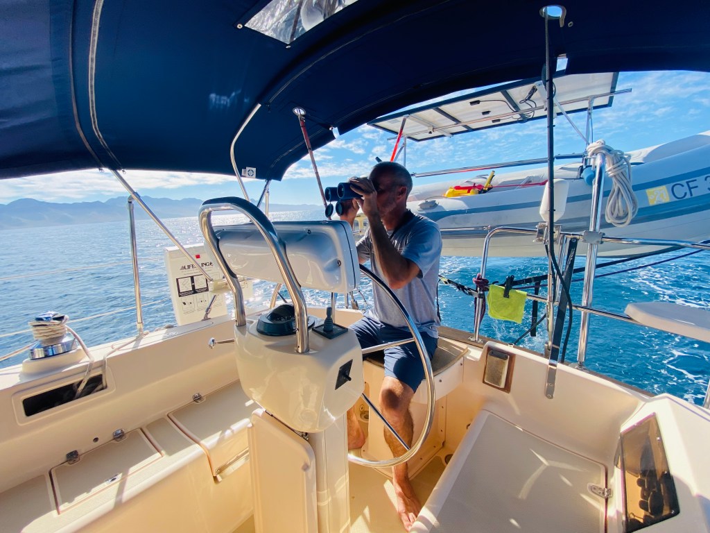 We left La Paz and motored across the Bahia de La Paz to Partida, north of Espíritu Santo. We were here last year. This was a great first stop to get some miles in, make water, and test out Starlink in our first remote location as we are not using the Irridium Go this season. We had calm winds so did not do much sailing but it was a very pleasant first day on the water. Once the anchor was down at Partida, we started making water and jumped in for a swim. Three hours later the tank was full, we barbecued, and soaked in the bliss of being back out at anchor. During the night we woke to a sea lion taking a loud breath at our stern and coming around to rub on the anchor chain.
